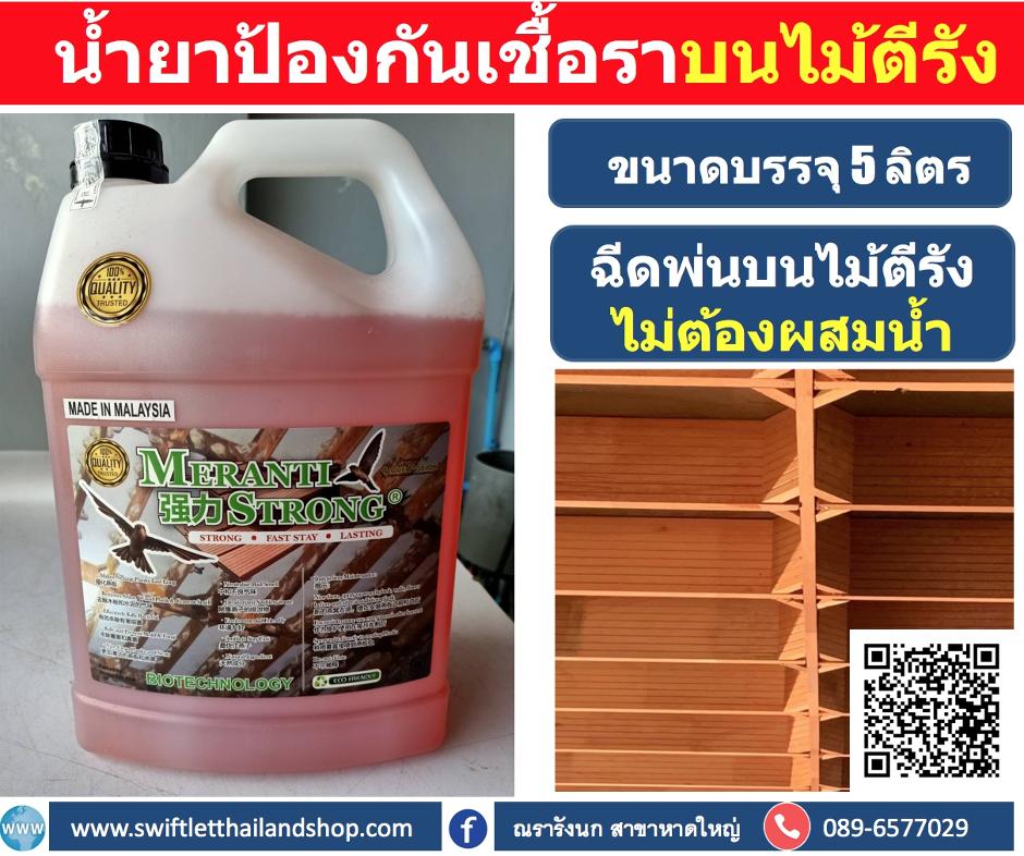 น้ำยาป้องกันเชื้อราบนไม้ตีรัง ขนาดบรรจุ 5 ลิตร ใช้ฉีดพ่นบน/ทา บนไม้ตีรัง เพื่อป้องกันการการเกิดราบนแผ่นไม้ (ไม่ต้องผสมน้ำ)