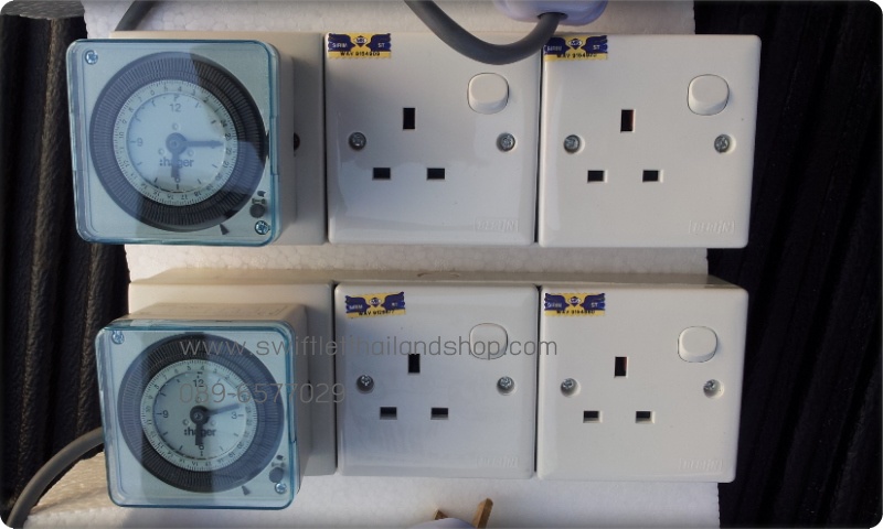 อีเมลล์: swiftletthailandshop@gmail.comD1A - HAGER TIMERBOARD 1 CH 2 POINT เครื่องตั้งเวลาอัตโนมัติ HAGER รุ่น EH711 พร้อมเต้าเสียบ 2 ชุด สำหรับต่อพ่วงกับอุปกรณ์ไฟฟ้าทุกประเภท ตั้งค่าได้ในระดับ 10 นาที มีระบบสำรองไฟในตัว ทำให้นาฬิกายังคงทำงานปกติเมื่อไฟฟ้าดับ ทำให้การทำงานและสั่งการไม่ผิดพลาด ติดตั้งง่ายมาก ทนทาน คุ้มค่า
