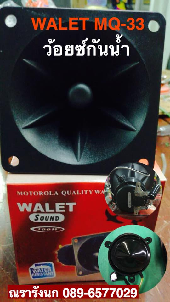 MQ33 - WALET MQ-33 Tweeter WaterResistant with CAPACITOR 3x3 ลำโพง TWEETER สำหรับเสียงดึงนกแอ่นคุณสมบัติเด่น คือว้อยซ์กันน้ำ ใช้ประกอบเป็นลำโพงภายในและภายนอกบ้านได้  มี Condenser ในตัว เสียงใส ดึงนกได้เป็นอย่างดี ถ้าใครชอบแนว 3x3 ตัวนี้ท่านไม่ผิดหวังแน่นอน